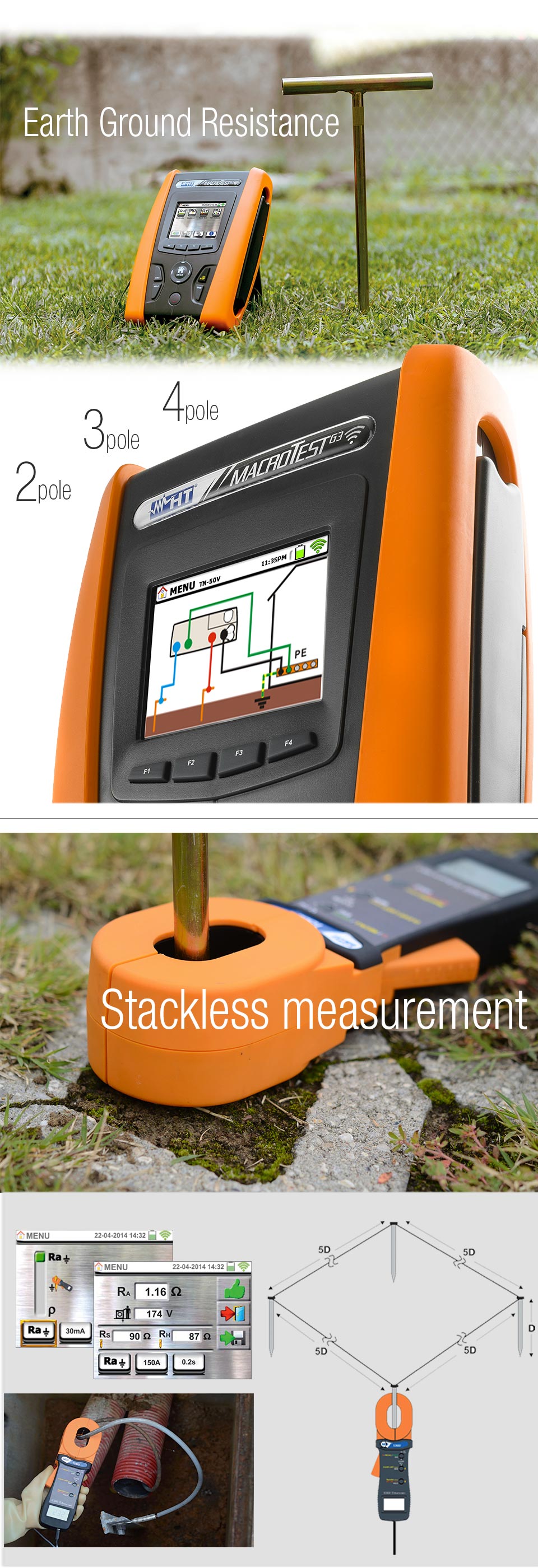 MACROTEST G3 je inovativní multifunkční přístroj pro revize instalací v souladu s normou IEC / EN61557. Barevný TFT dotykový displej umožňuje pohodlné ovládání pomocí ikon. Ovládání je uživatelsky přívětivé a velmi intuitivní i pro nekvalifikované uživatele. Multifunkční revizní přístroj MACROTEST G3 umožňuje uložit všechna měření do interní paměti, ,přenos uložených dat do PC pomocí USB nebo vestavěným Wi-Fi rozhraním kompatibilním s iOS a Android smartphony nebo tablety. Multifunkční revizní přístroj MACROTESTG3 s volitelným příslušenstvím IMP57 umožňuje měření impedance smyčky s vysokým rozlišením (0.1mOhm)..